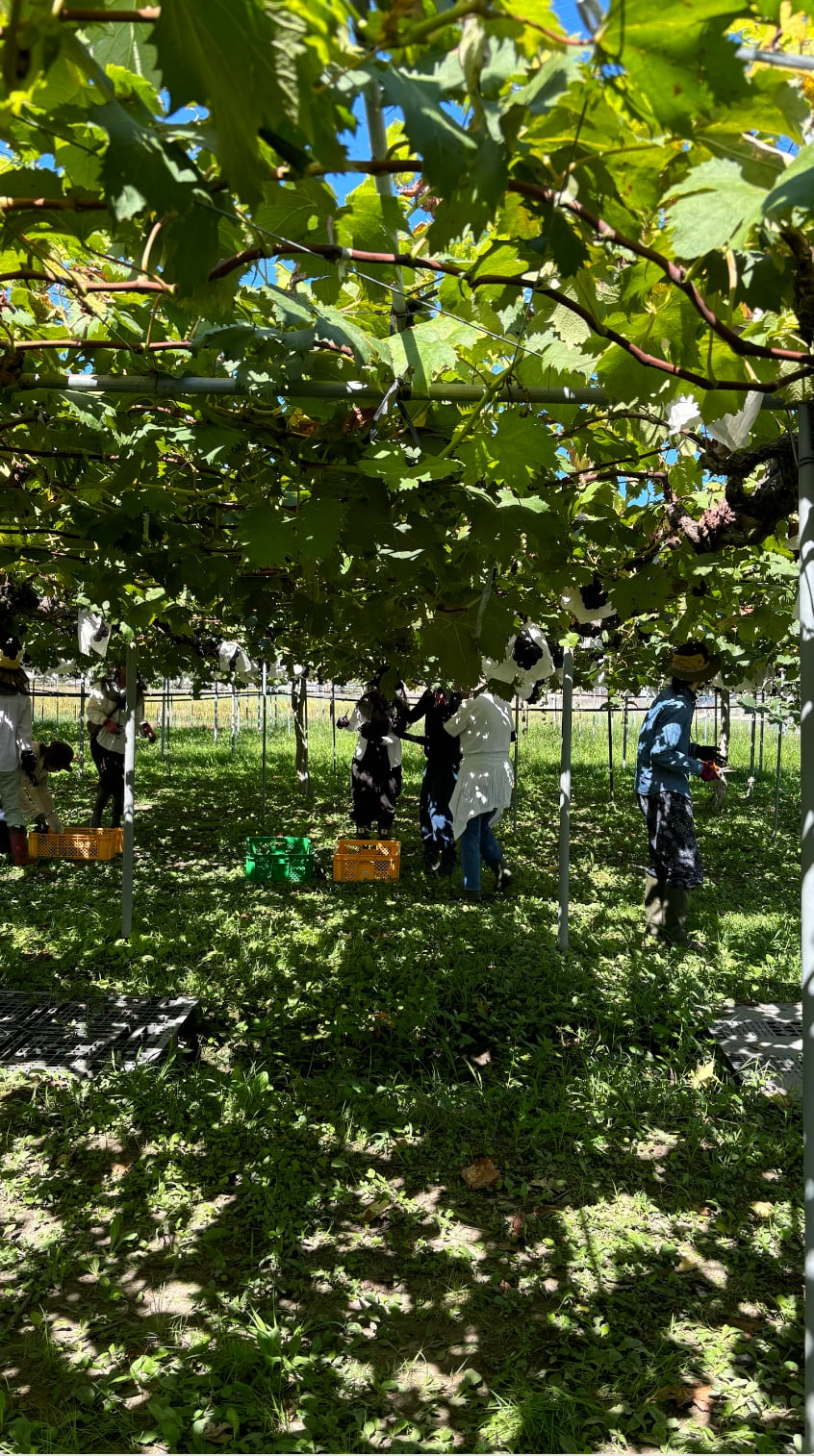 昨年も仕込ませていただいた彦根の生食用ぶどう。今年は一部のエリアをワイン用の栽培に切り替えていただく。NPO法人ハニカムファーマーズカンパニーの代表矩さん、チシンさん、ジョンくんを始めとして、農福連携事業によるチームワークで目の行き届いた美しい畑。今年も扱わせていただきとても嬉しく思います。昨年手応えを感じたロゼの仕込みを踏襲しつつ、今年は収穫時期を少し遅らせ、より凝縮感のある液体に仕上がっています。