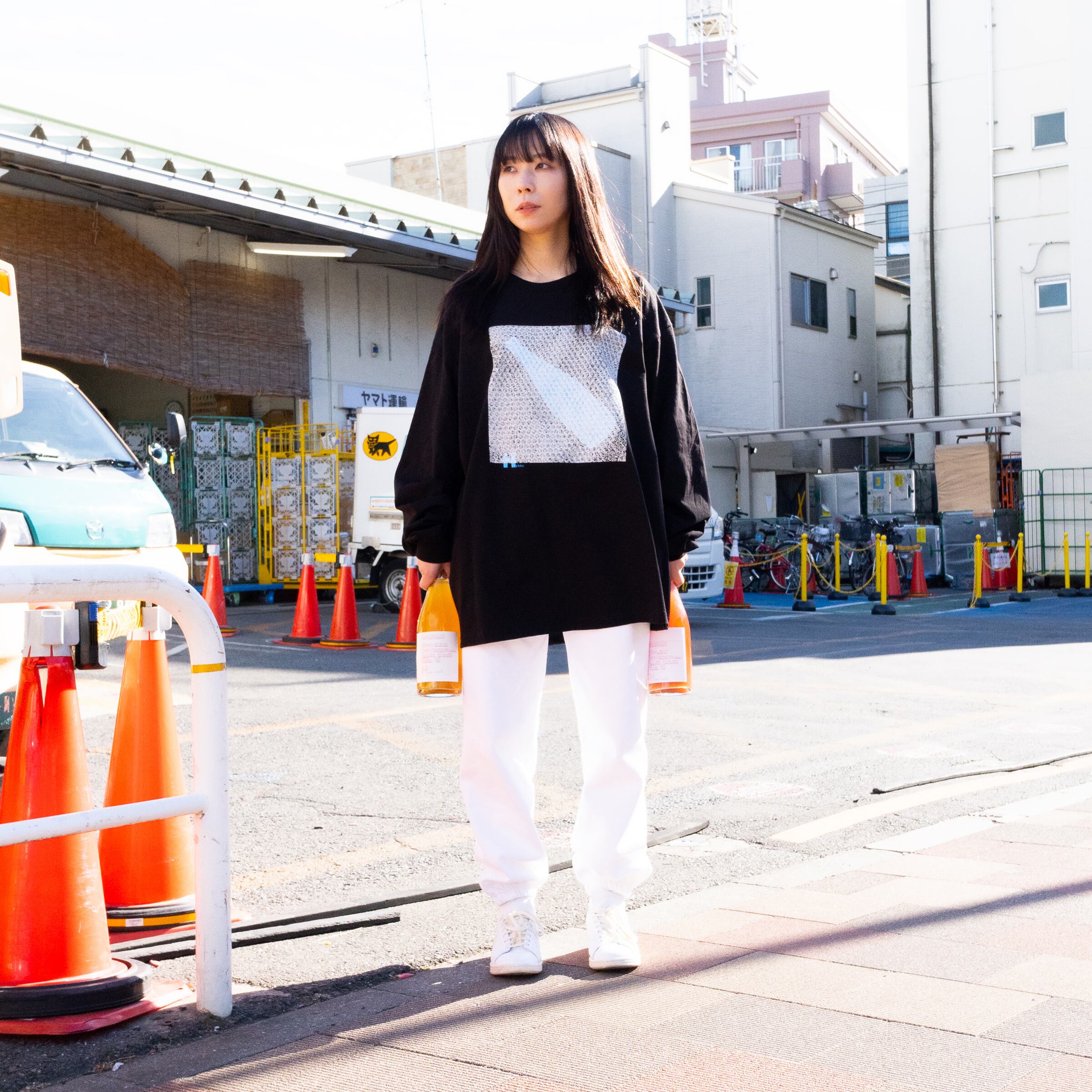 梱包資材としてはプラ素材が使われるのが一般的ですが、それが少し嫌で梱包用のTシャツを作りました。オーガニックではないのですが、コットン100%で繰り返し使えます。